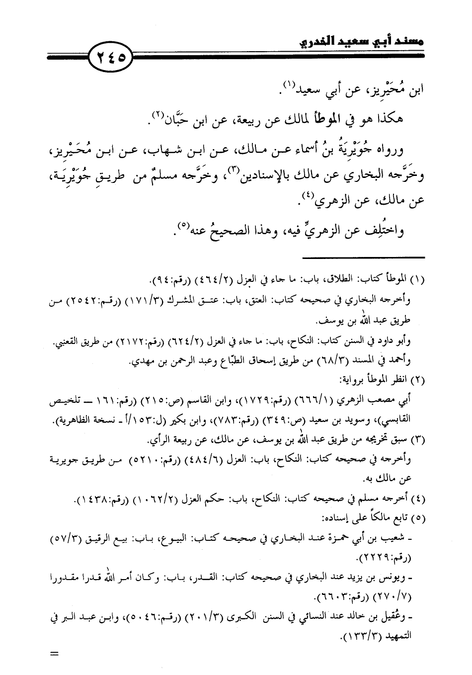 ورواه جُوَيْرِيَةُ بنُ أسماء عن مالك، عن ابن شهاب، عن ابن مُحَيْرِيز، وخَرَّجه البخاري عن مالك بالإسنادين (٣)، وخَرَّجه مسلمٌ من طريقِ جُوَيْرِيَة، عن مالك، عن الزهري (٤).