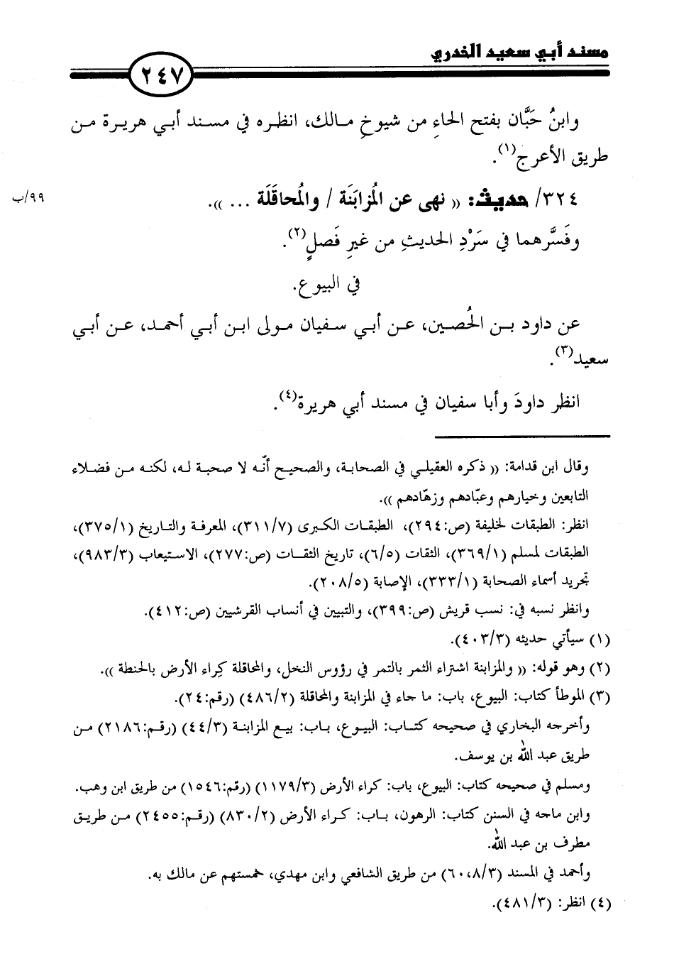 انظر داودَ وأبا سفيان في مسند أبي هريرة (٤).