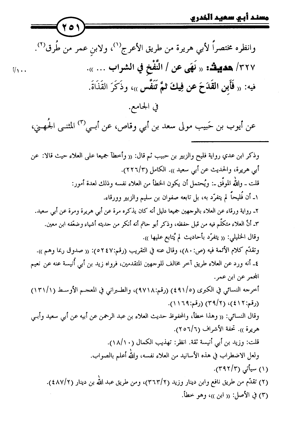 = وذكر ابن عدي رواية فليح والزبير بن حبيب ثم قال: "وأخطأ جميعًا على العلاء حيث قالا: عن أبي هريرة، والحديث عن أبي سعيد". الكامل (٣/ ٢٢٦).
