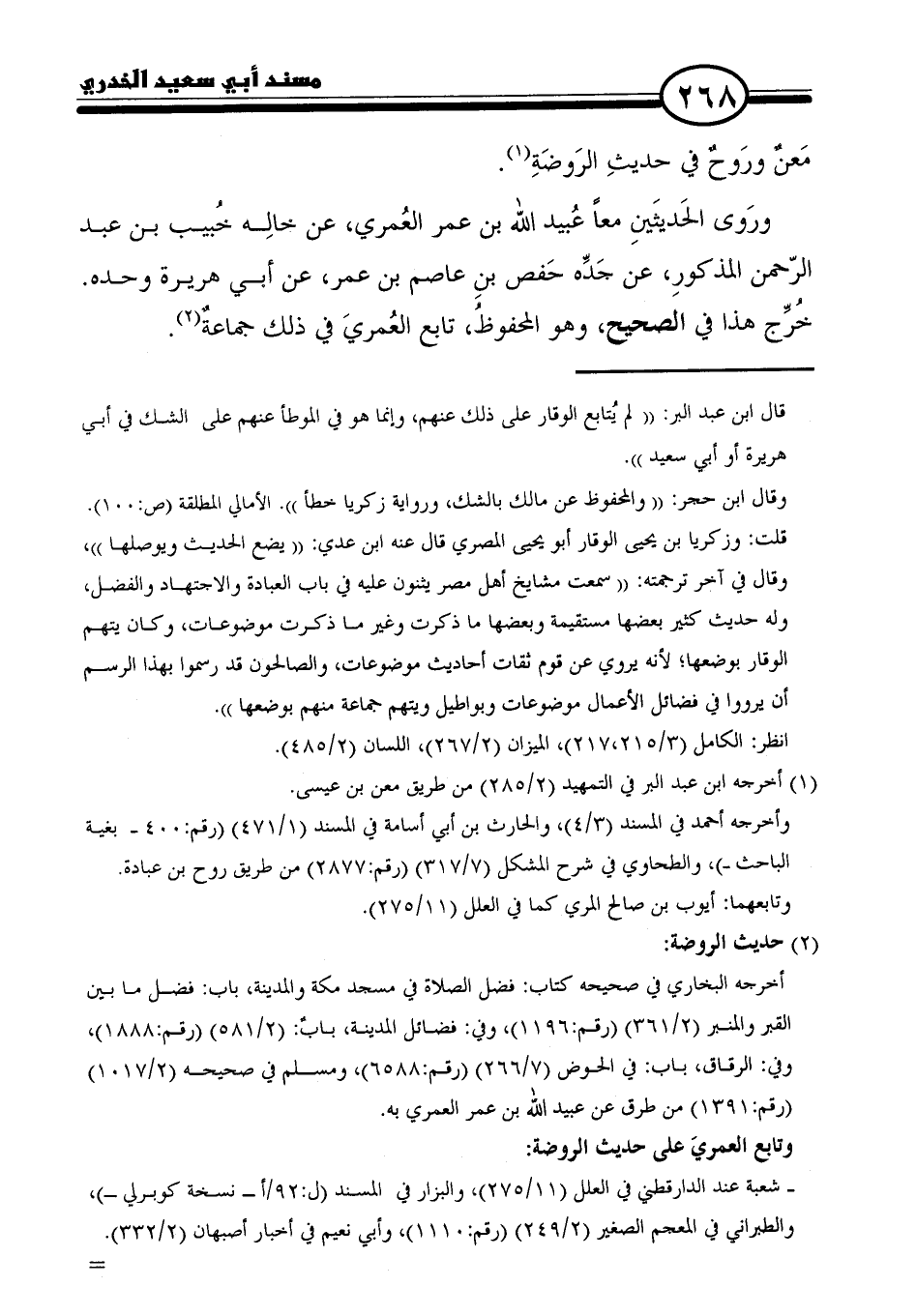 وتابع العمريَ على حديث الروضة: