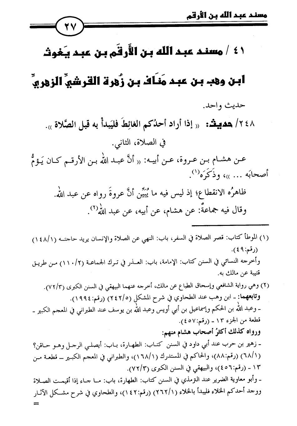 ٤١ / مسند عبد الله بن الأَرقَم بن عبد يَغوث بن وهب بن عبد مَنَاف بن زُهرة القرشيِّ الزهريِّ