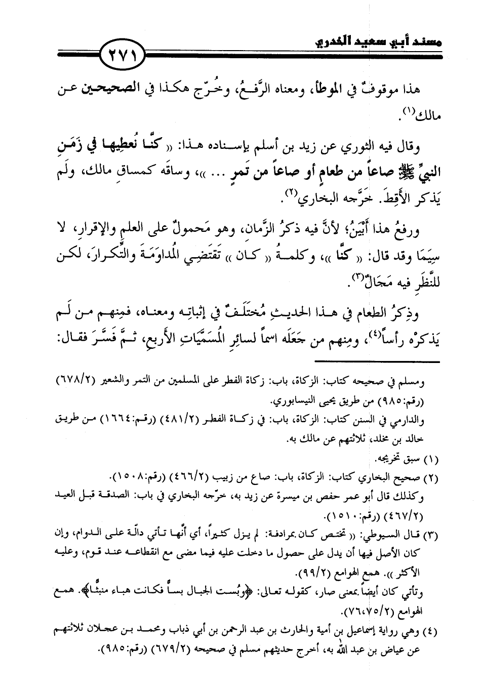 وقال فيه الثوري عن زيد بن أسلم بإسناده هذا: "كنَّا نُعطِيها في زَمَنِ النَّبِيِّ - صلى الله عليه وسلم - صاعًا من طعامٍ أو صاعًا من تَمرٍ ... ، وساقَه كمساقِ مالك، ولَم يَذكر الأَقِطَ. خَرَّجه البخاري (٢).