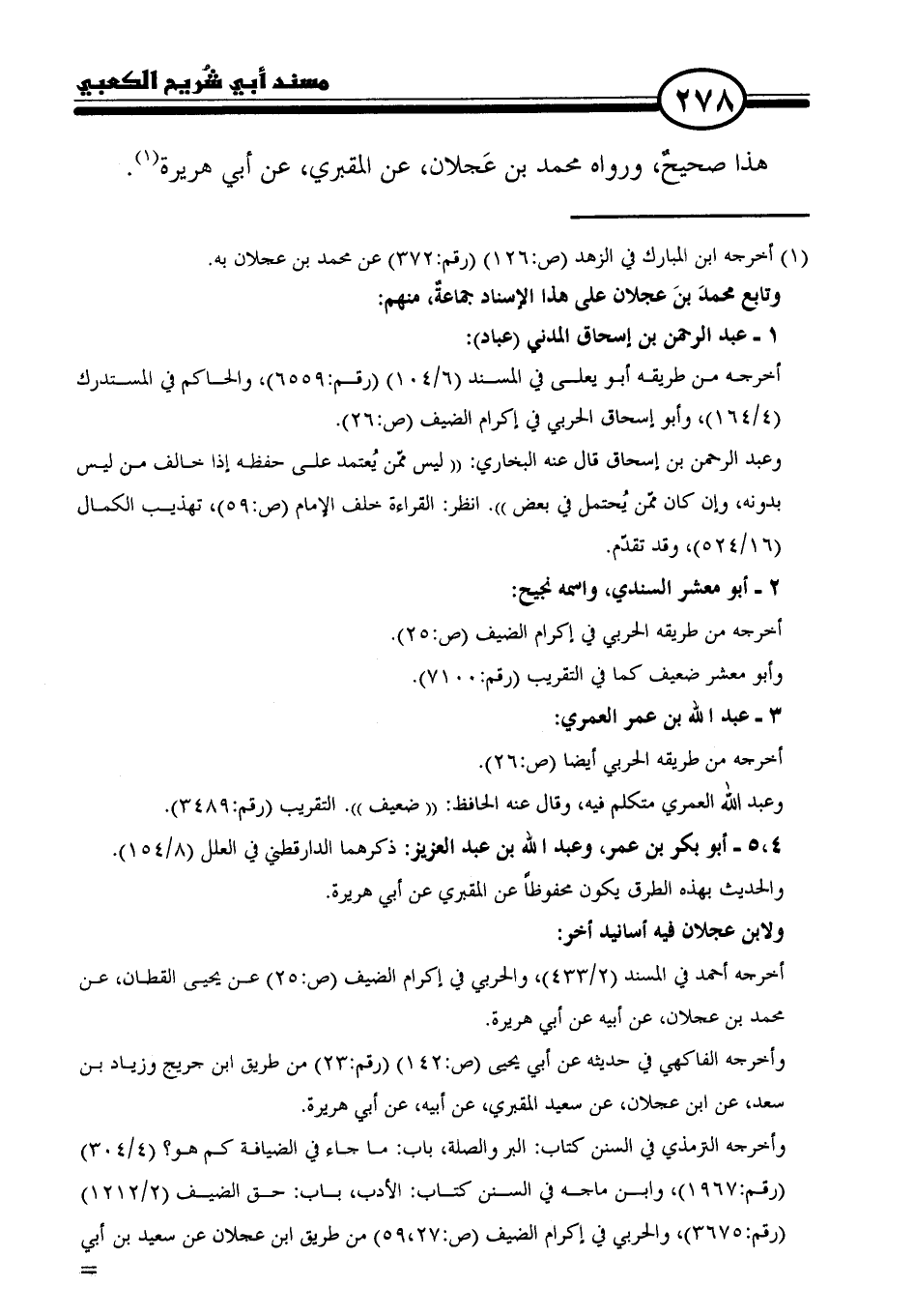 وأخرجه الفاكهي في حديثه عن أبي يحيى (ص: ١٤٢) (رقم: ٢٣) من طريق ابن جريج وزياد بن سعد، عن ابن عجلان، عن سعيد المقبري، عن أبيه، عن أبي هريرة.