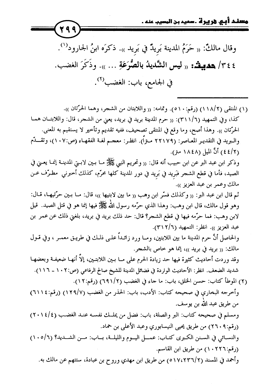وقال مالكٌ: "حَرَمُ المدينة بَرِيدٌ فِي بَرِيد". ذكرَه ابن الجارود (١).