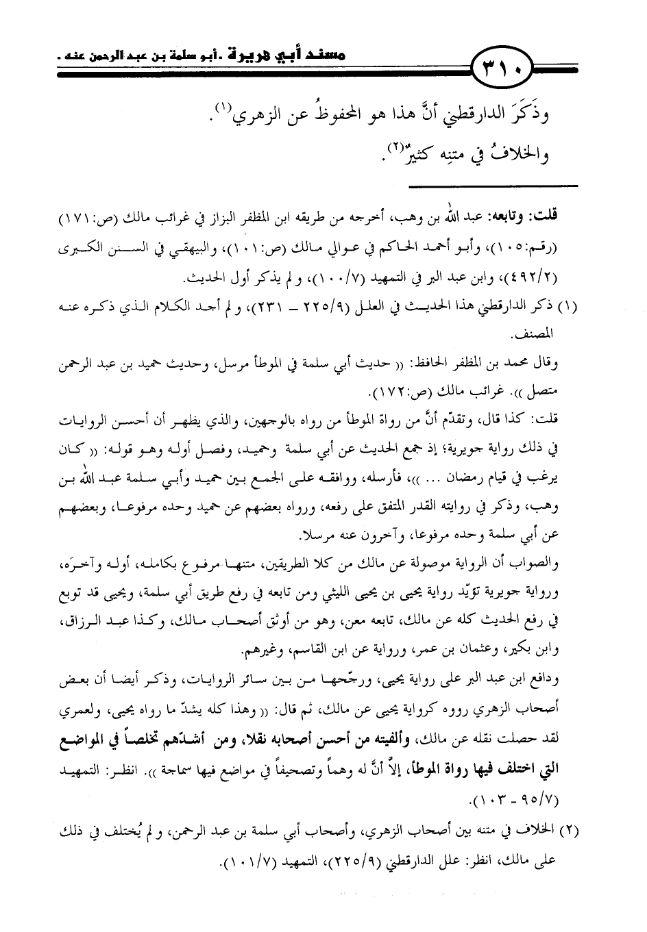 (٢) الخلاف في متنه بين أصحاب الزهري، وأصحاب أبي سلمة بن عبد الرحمن، ولم يُختلف في ذلك على مالك، انظر: علل الدارقطني (٩/ ٢٢٥)، التمهيد (٧/ ١٠١).