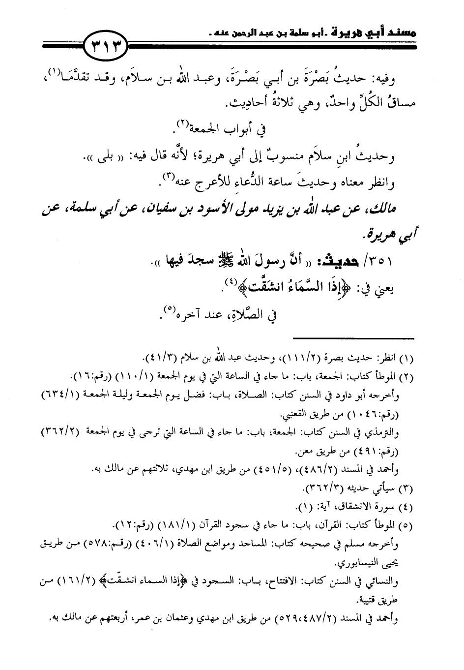 ٣٥١ / حديث: "أنَّ: رسولَ الله - صلى الله عليه وسلم - سجدَ فيها".