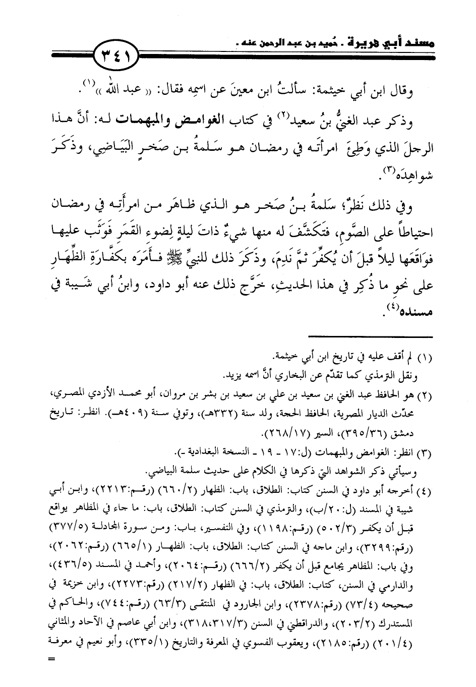وذكر عبد الغنيُّ بنُ سعيد (٢) في كتاب الغوامض والمبهمات له: أنَّ هذا الرجلَ الذي وَطِئَ امرأتَه في رمضان هو سَلمةُ بن صَخرٍ البَيَاضِي، وذَكَرَ شواهِدَه (٣).