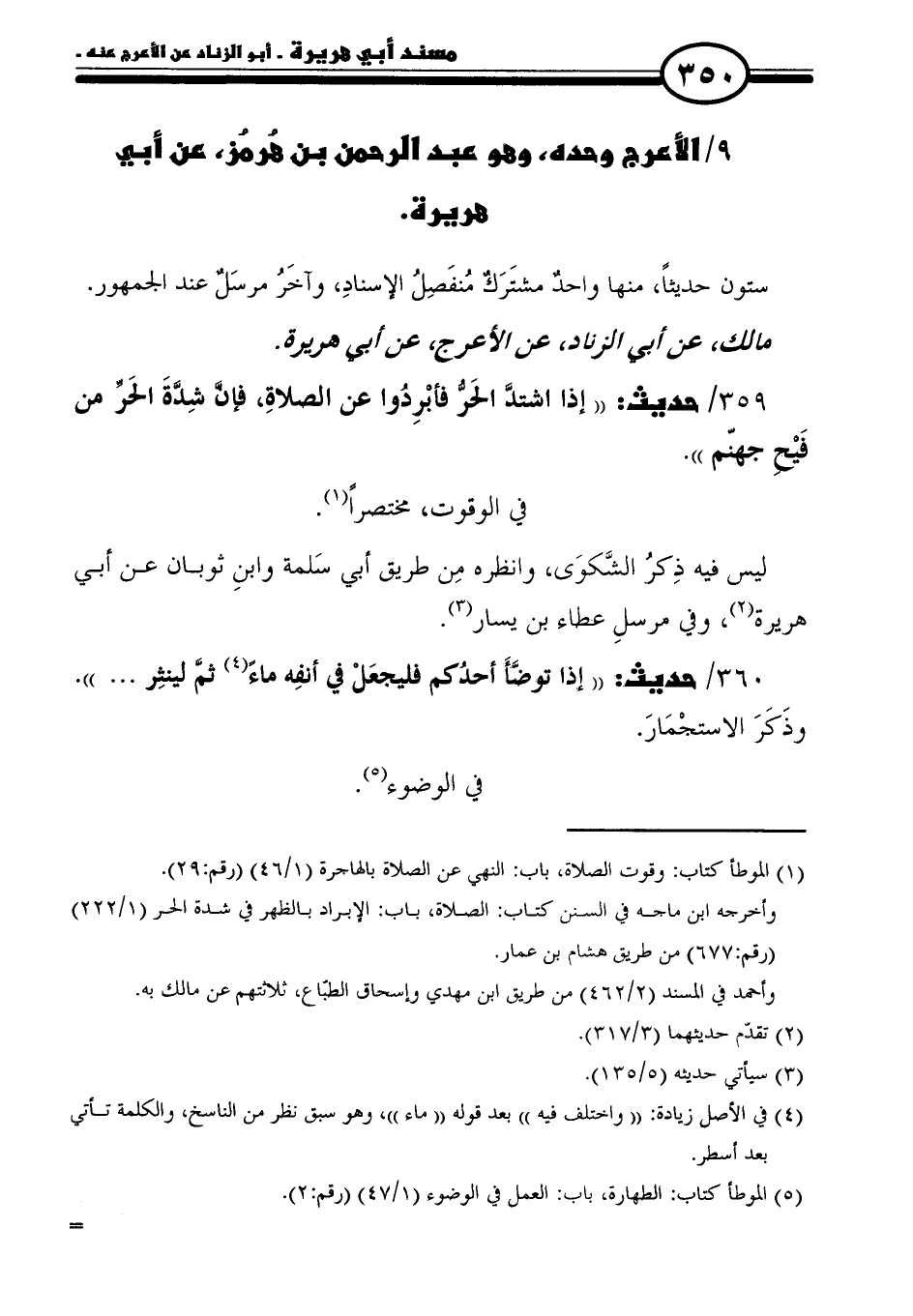 (٥) الموطأ كتاب: الطهارة، باب: العمل في الوضوء (١/ ٤٧) (رقم: ٢). =