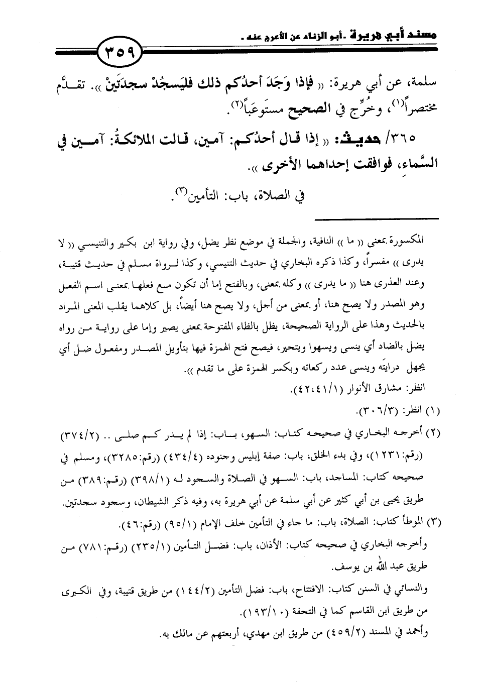 ٣٦٥/ حديث: "إذا قال أحدُكم: آمين، قالت الملائكةُ: آمين في السَّماءِ، فوافقت إحداهما الأخرى".