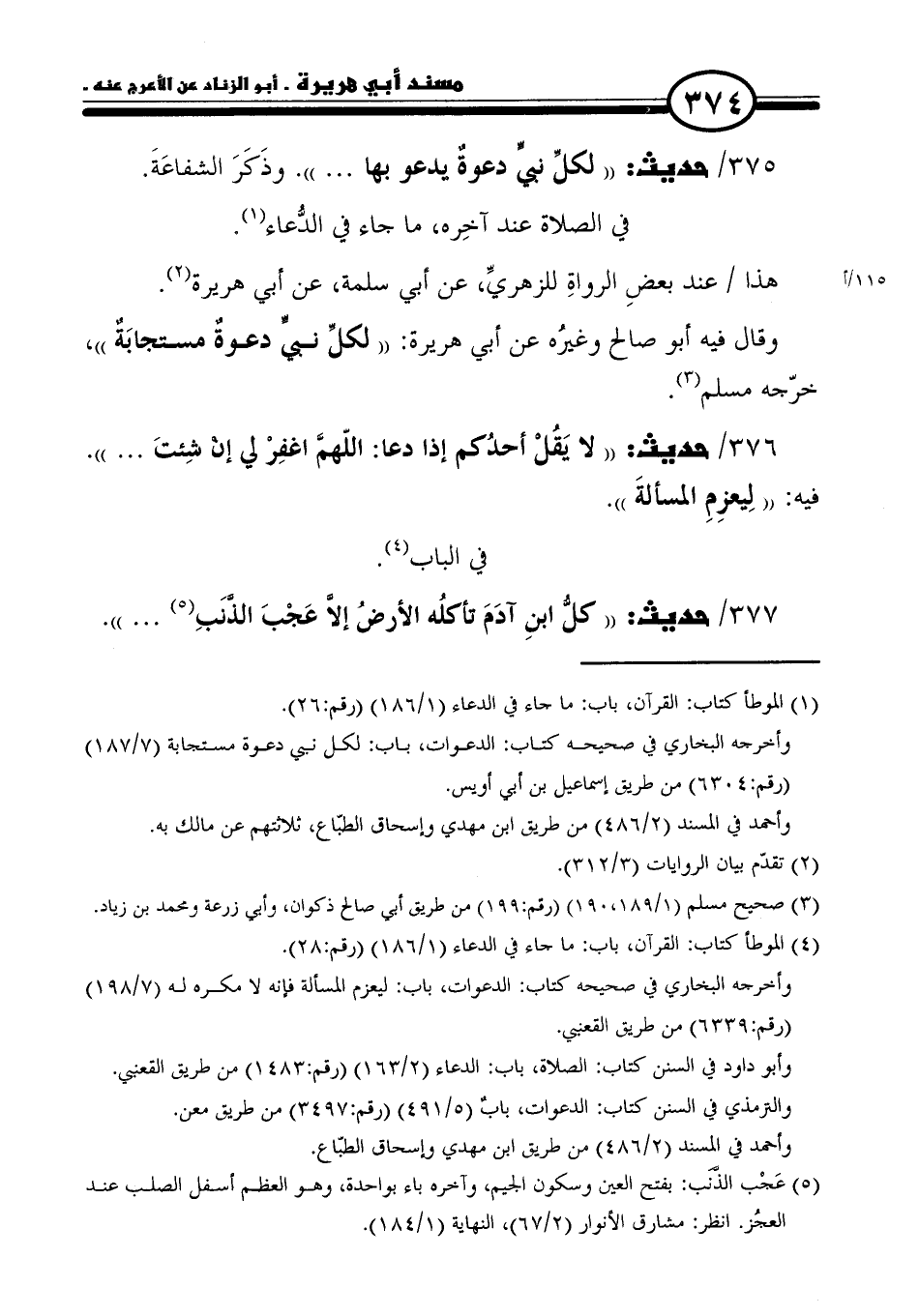 ٣٧٧/ حديث: "كلُّ ابنِ آدَمَ تأكلُه الأرضُ إلّا عَجْبَ الذَّنَبِ (٥). . . ".