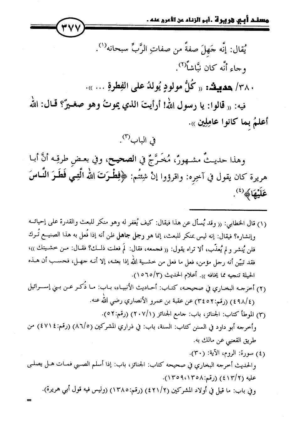 ٣٨٠/ حديث: "كُلُّ مولودٍ يُولدُ على الفِطرةِ. . . ".
