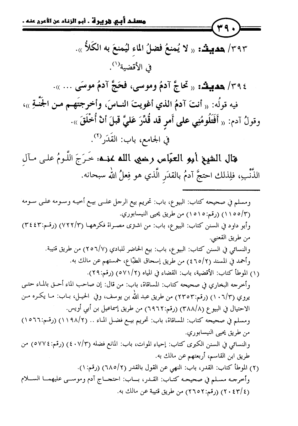 ٣٩٤/ حديث: "تحاجَّ آدمُ وموسى، فحَجَّ آدمُ موسَى. . . ".
