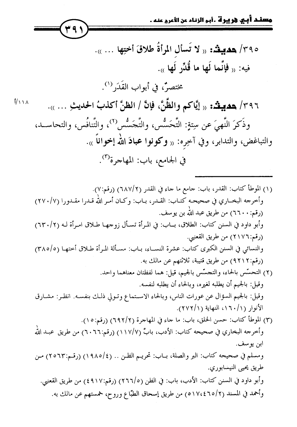 (٣) الموطأ كتاب: حسن الخلق، باب: ما جاء في المهاجرة (٢/ ٦٩٢) (رقم: ١٥).