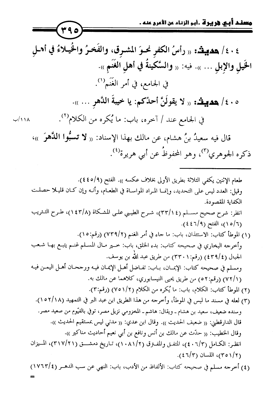 ٤٠٤/ حديث: "رأسُ الكفرِ نحوَ المشرِق، والفَخرُ والخيلاءُ في أهل الخَيلِ والإِبلِ. . . ". فيه: "والسَّكينةُ أهلِ الغَنَمِ".