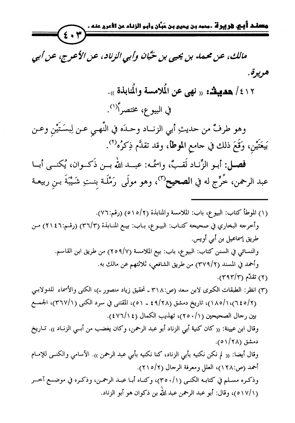 ٤١٢/ حديث: "نهى عن المُلامسة والمُنابدة".