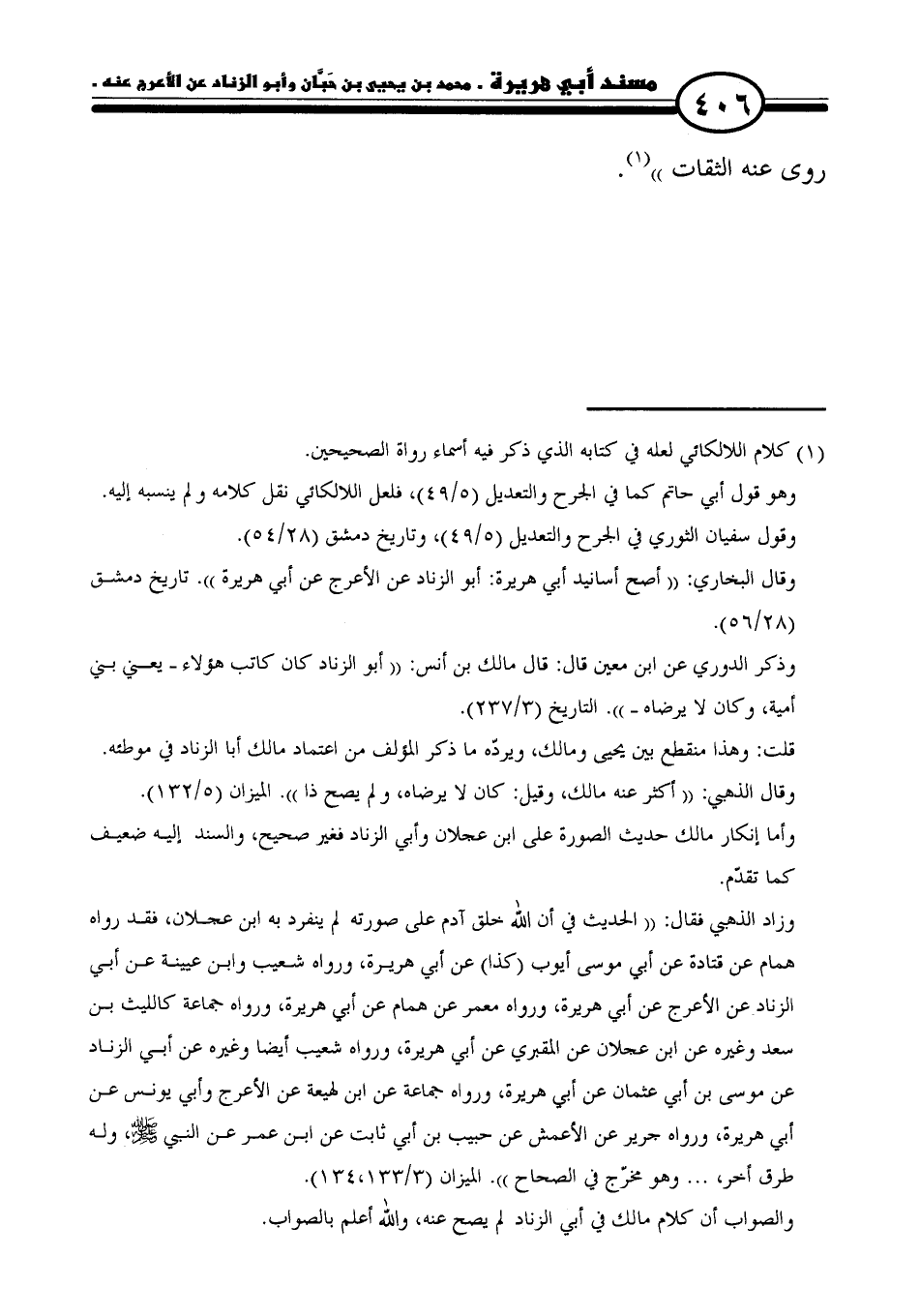(١) كلام اللالكائي لعله في كتابه الذي ذكر فيه أسماء رواة الصحيحين.