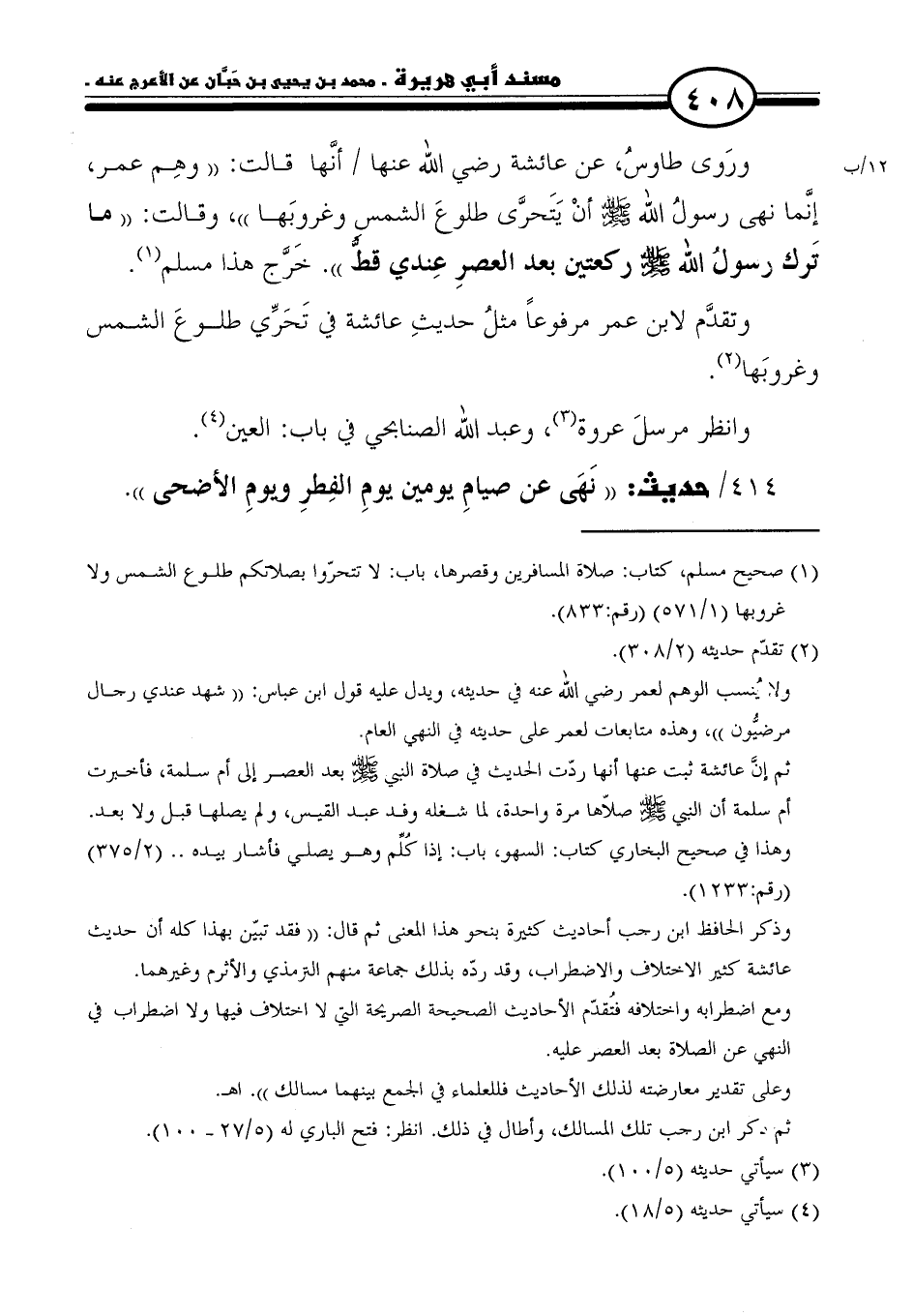 ٤١٤/ حديث: "نَهَى عن صيامِ يومين يومِ الفِطرِ ويومِ الأضحى".