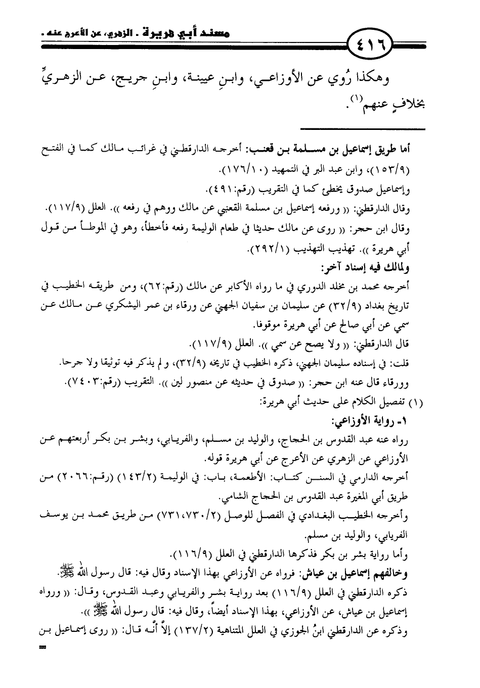رواه عنه عبد القدوس بن الحجاج، والوليد بن مسلم، والفريابي، وبشر بن بكر أربعتهم عن الأوزاعي عن الزهري عن الأعرج عن أبي هريرة قوله.