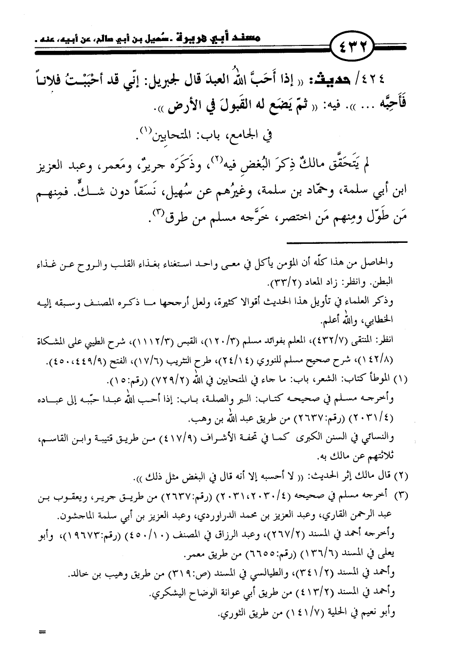 لم يَتَحَقَّق مالكٌ ذِكرَ البُغضِ فيه (٢)، وذَكَرَه جريرٌ، ومَعمر، وعبد العزيز بن أبي سلمة، وحمّاد بن سلمة، وغيرُهم عن سُهيل، نَسَقًا دون شكٍّ. فمِنهم مَن طَوّل ومِنهم مَن اختصر، خَرَّجه مسلم من طرق (٣).