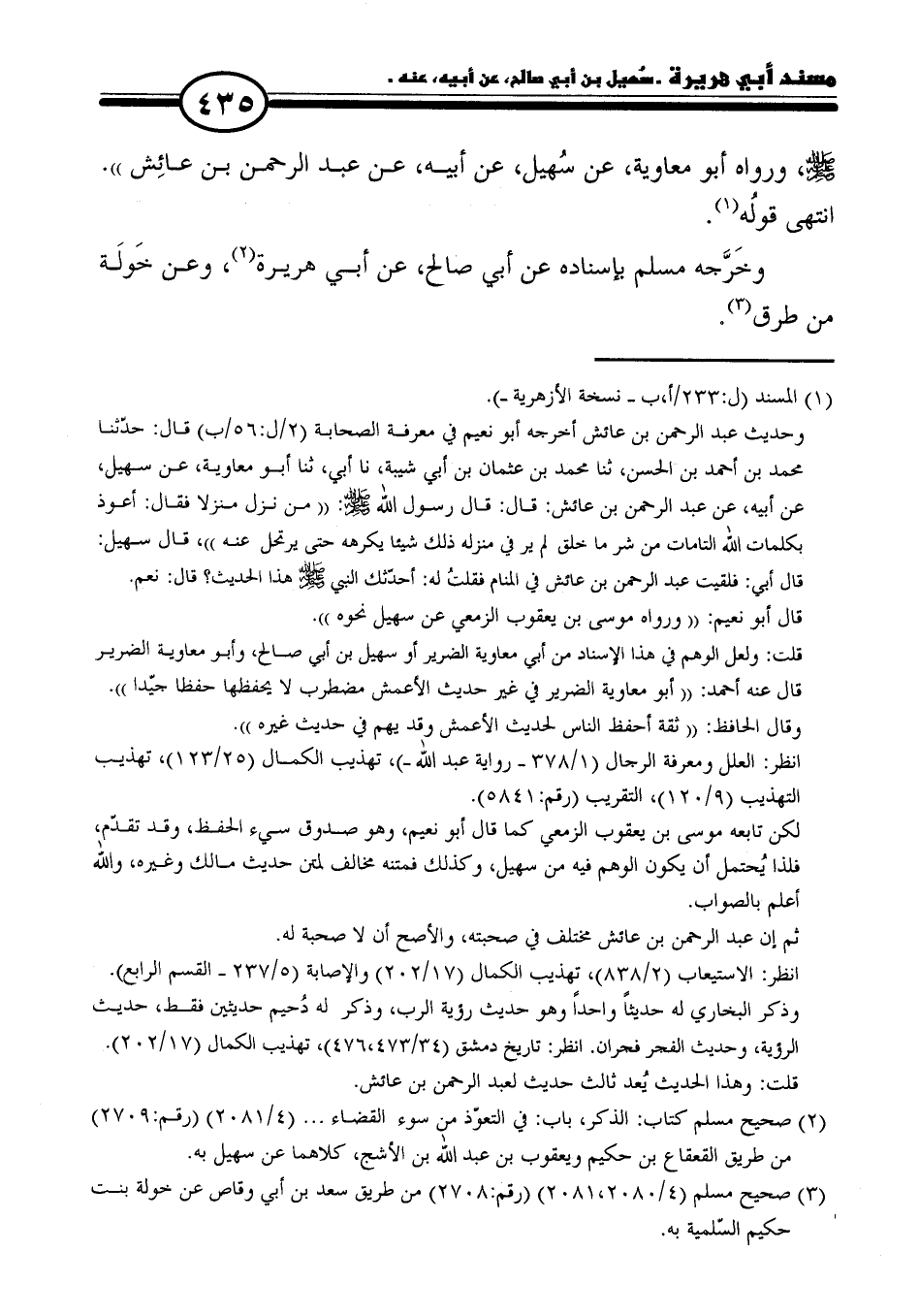 - صلى الله عليه وسلم -، ورواه أبو معاوية، عن سُهيل، عن أبيه، عن عبد الرحمن بن عائِش". انتهى قولُه (١).