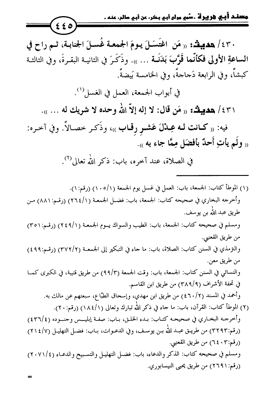 ٤٣١/ حديث: "مَن قال: لا إله إلّا الله وحده لا شريك له. . . ".
