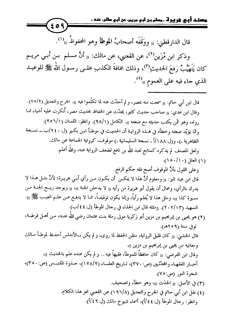 (٤) نقل ابن أبي حاتم في الجرح والتعديل (٨/ ١٩٦) عن القعنبي نحو هذا الكلام.