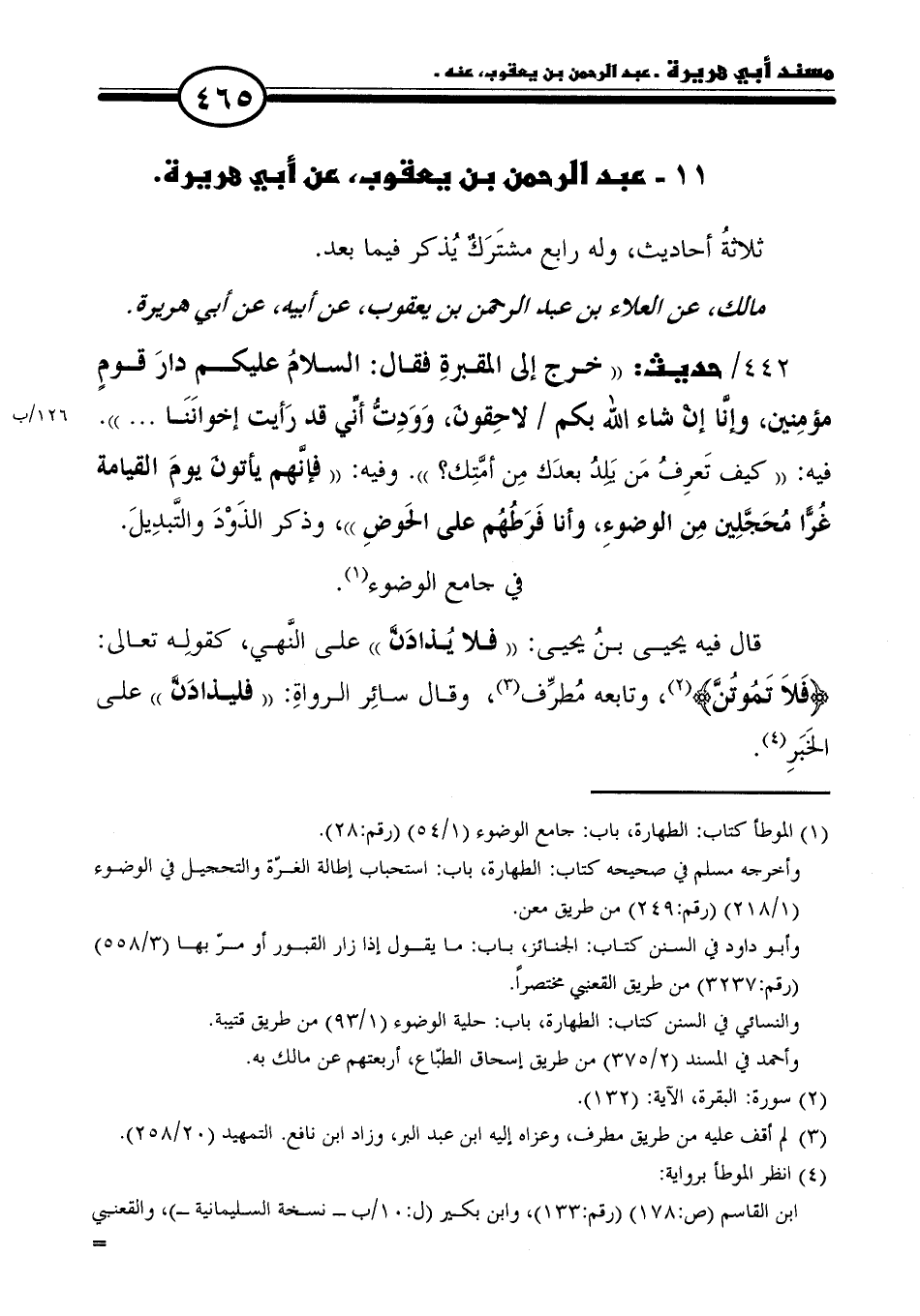 (١) الموطأ كتاب: الطهارة، باب: جامع الوضوء (١/ ٥٤) (رقم: ٢٨).