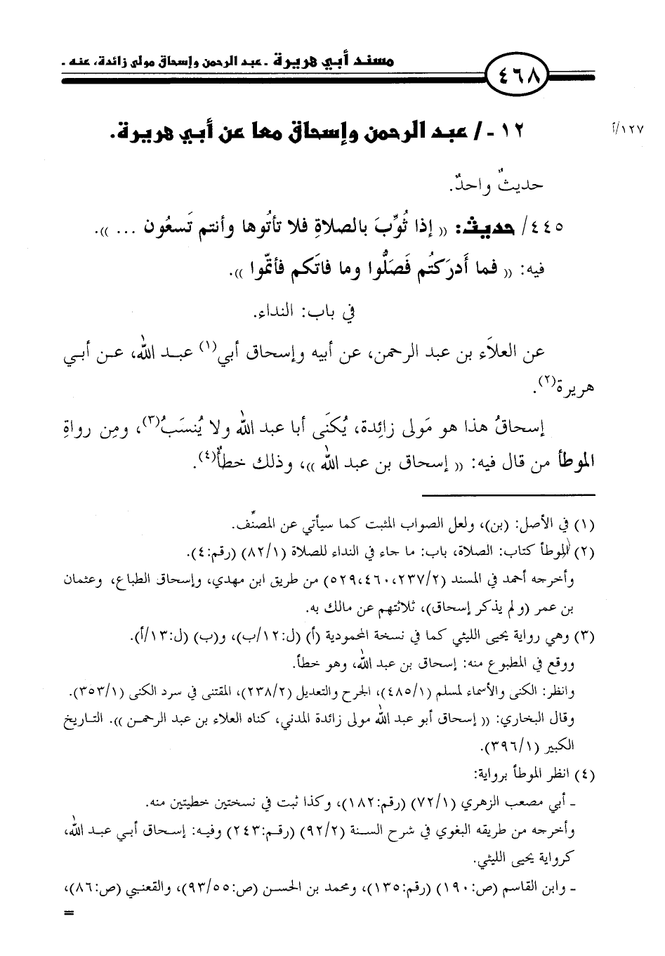 ١٢ - عبد الرحمن وإسحاق معا عن أبي هريرة.