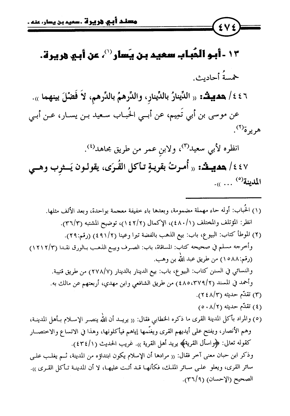 ١٣ - أبو الحُباب سعيد بن يَسار (١)، عن أبي هريرة.