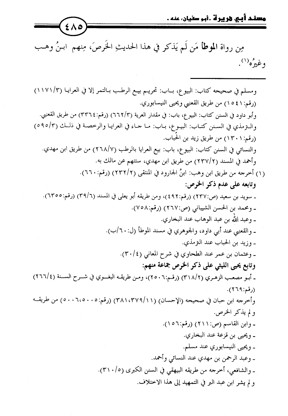 = ومسلم في صحيحه كتاب: البيوع، باب: تحريم بيع الرطب بالتمر إلا في العرايا (٣/ ١١٧١) (رقم: ١٥٤١) من طريق القعنبي ويحيى النيسابوري.