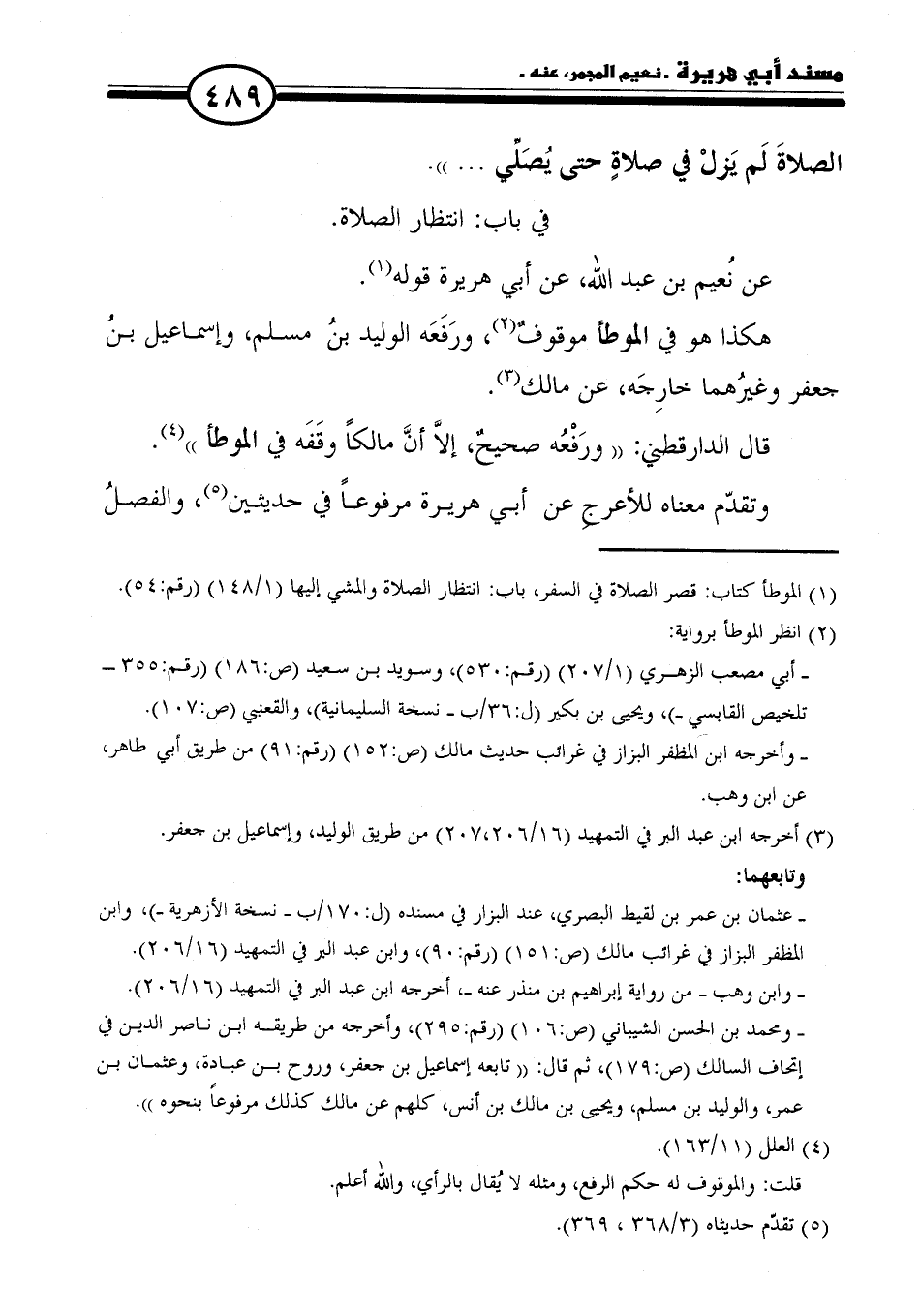 (١) الموطأ كتاب: قصر الصلاة في السفر، باب: انتظار الصلاة والمشي إليها (١/ ١٤٨) (رقم: ٥٤).