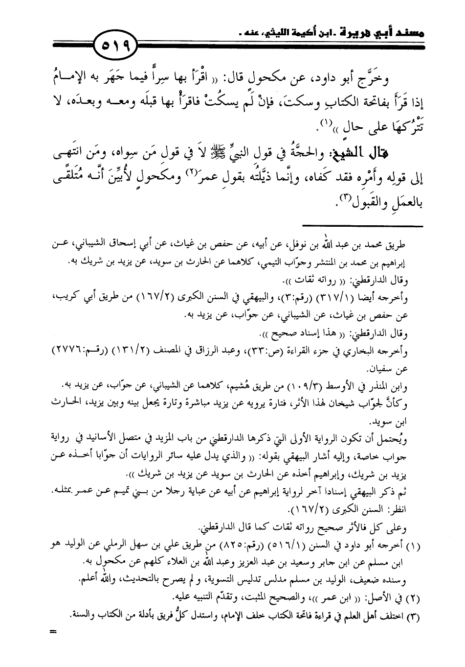 (١) أخرجه أبو داود في السنن (١/ ٥١٦) (رقم: ٨٢٥) في طريق علي بن سهل الرملي عن الوليد هو ابن مسلم عن ابن جابر وسعيد بن عبد العزيز وعبد الله بن العلاء كلهم عن مكحول به.