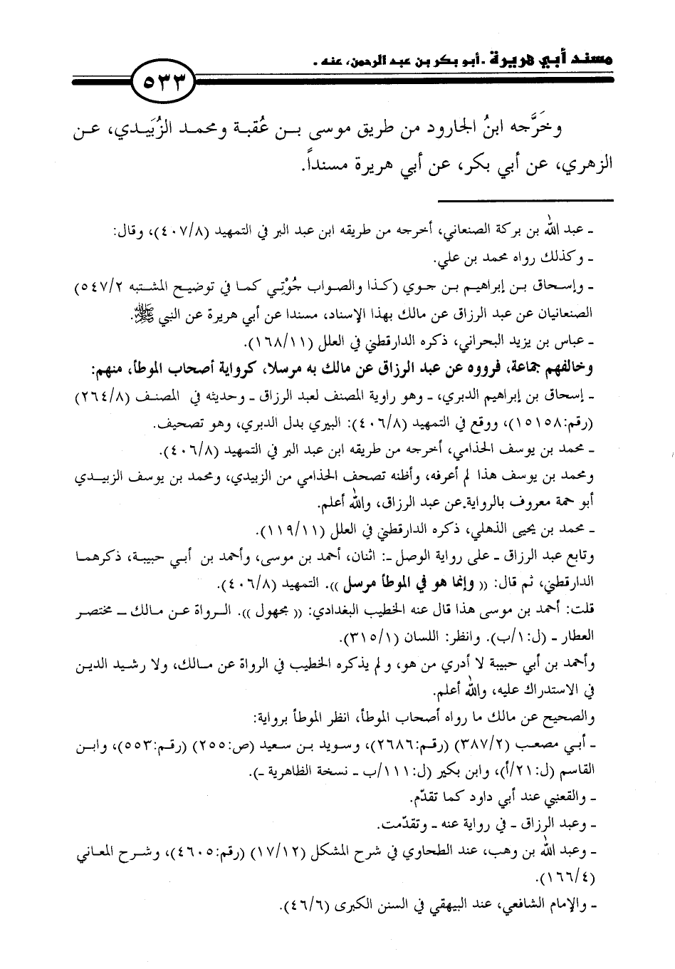 - وإسحاق بن إبراهيم بن جوي (كذا والصواب جُوْتِي كما في توضيح المشتبه ٢/ ٥٤٧) الصنعانيان عن عبد الرزاق عن مالك بهذا الإسناد، مسندا عن أبي هريرة عن النبي - صلى الله عليه وسلم -.