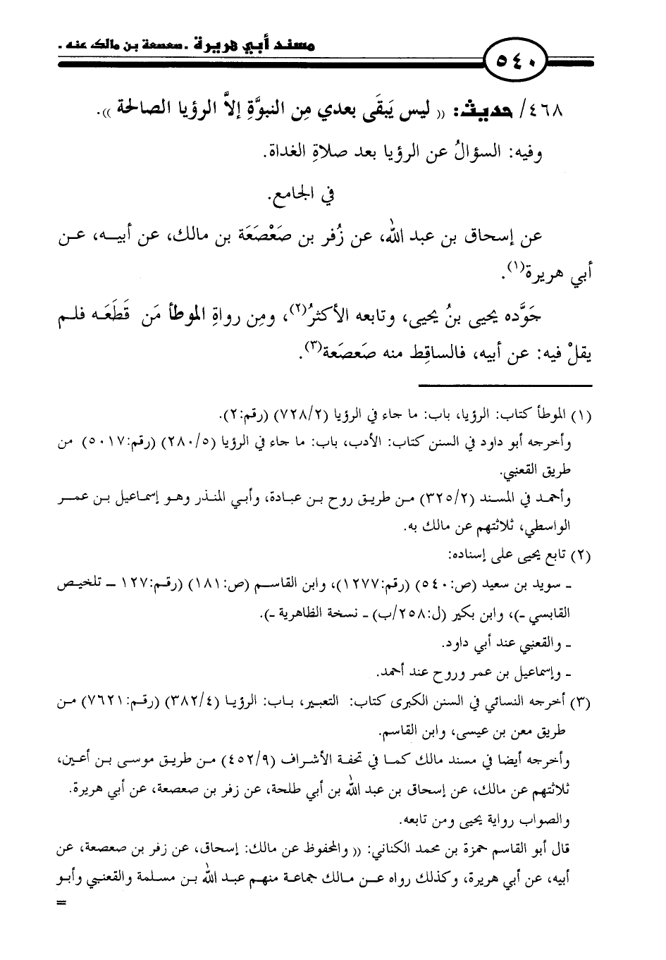 ٤٦٨ / حديث: "ليس يَبقَى بعدي مِن النبوَّةِ إلَّا الرؤيا الصالحة".