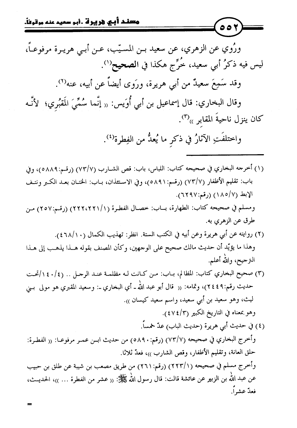 (٣) صحيح البخاري كتاب: المظالم، باب: من كانت له مظلمة عند الرجل .. (٤/ ١٤٠/ تحت حدثنا رقم: ٢٤٤٩)، وتمامه: "قال أبو عبد الله -أي البخاري-: وسعيد المقبري هو مولى بني ليث، وهو سعيد بن أبي سعيد، واسم سعيد كيسان".