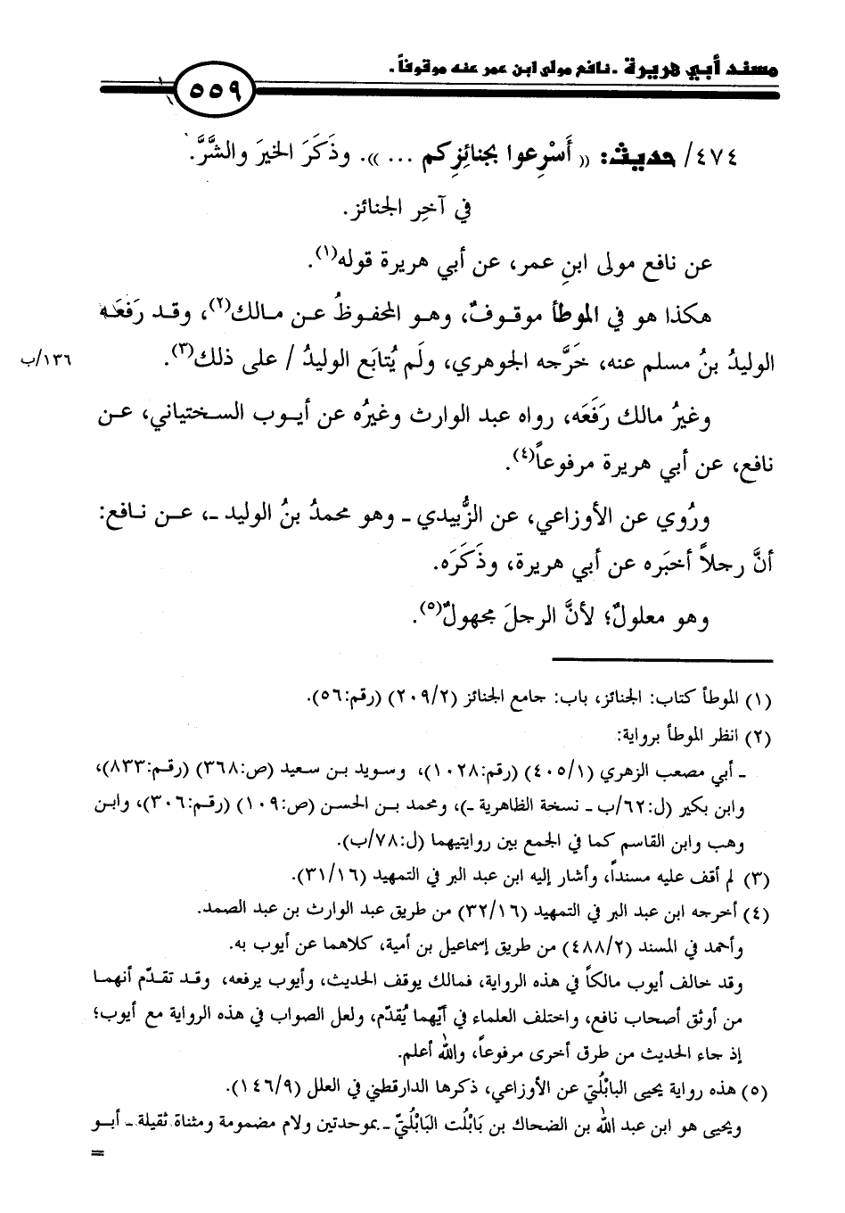 ٤٧٤ / حديث: "أَسْرِعوا بجنائِزِكم ... ". وذَكَرَ الخيرَ والشَّرَّ.