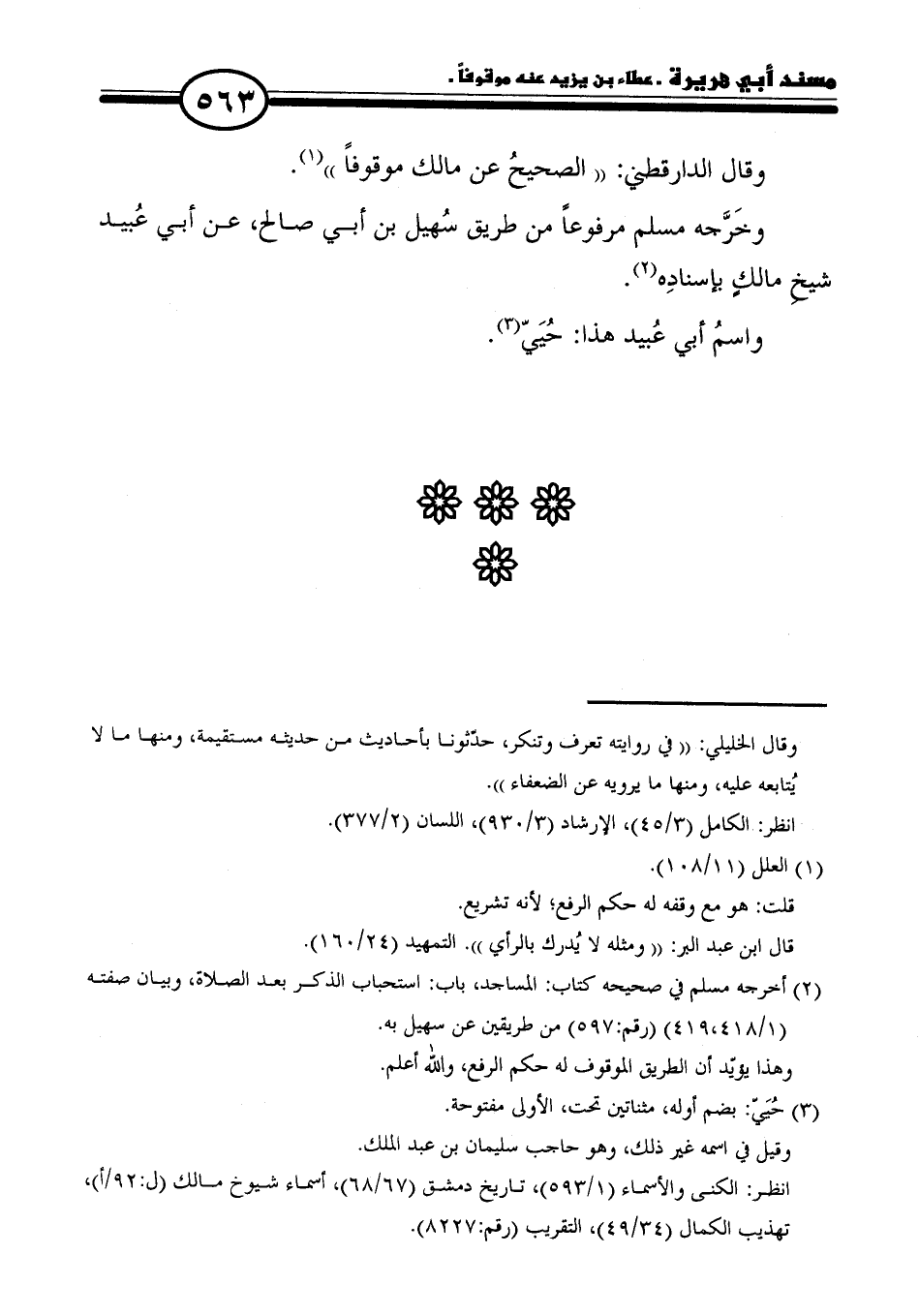 (٢) أخرجه مسلم في صحيحه كتاب: المساجد، باب: استحباب الذكر بعد الصلاة، وبيان صفته (١/ ٤١٨, ٤١٩) (رقم: ٥٩٧) من طريقين عن سهيل به.