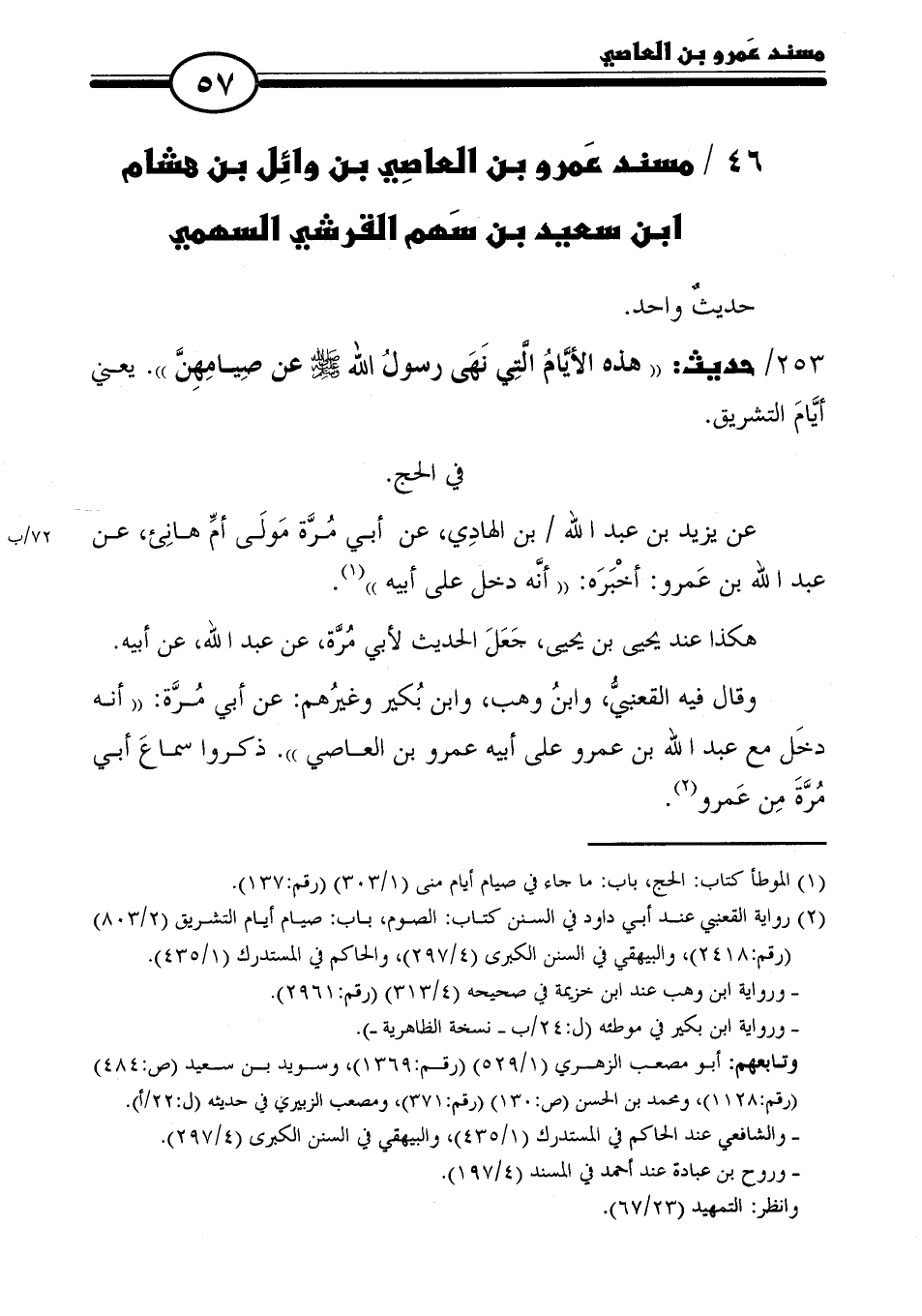 ٤٦ / مسند عَمرو بن العاصِي بن وائِل بن هشام بن سعيد بن سَهم القرشي السهمي