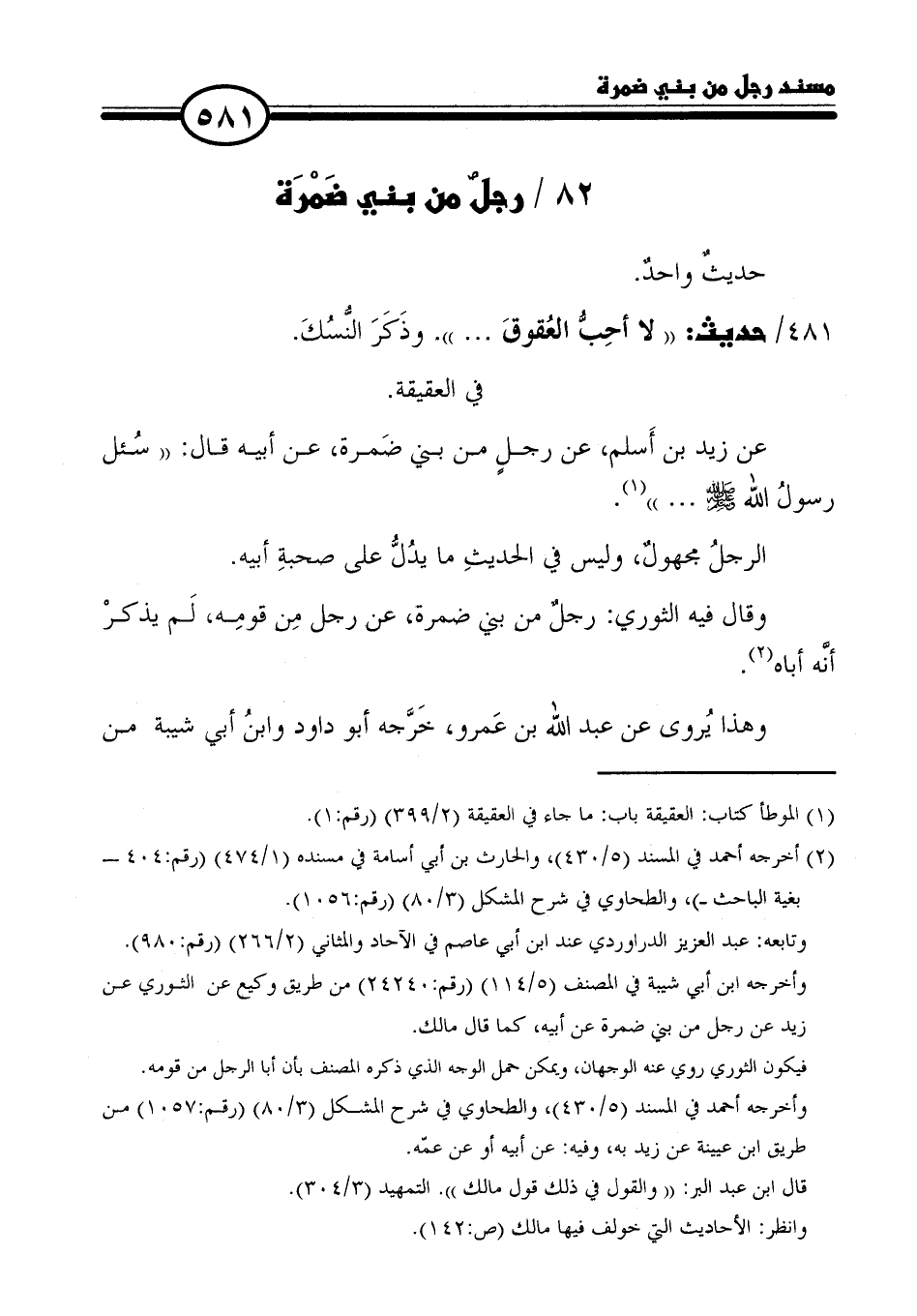 ٤٨١/ حديث: "لا أحِبُّ العُقوقَ ... ". وذَكَرَ النُّسُكَ.