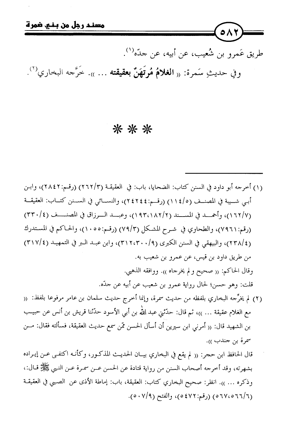 = أخرجه أبو داود في السنن كتاب: الضحايا، باب: في العقيقة (٣/ ٢٦٢) (رقم: ٢٨٤٢)، وابن أبي شيبة في المصنف (٥/ ١١٤) (رقم: ٢٤٢٤٤)، والنسائي في السنن كتاب: العقيقة (٧/ ١٦٢)، وأحمد في السند (٣/ ١٨٢, ١٩٣)، وعبد الرزاق في المصنف (٤/ ٣٣٠) (رقم: ٧٩٦١)، والطحاوي في شرح المشكل (٣/ ٧٩) (رقم: ١٠٥٥)، والحاكم في المستدرك (٤/ ٢٣٨)، والبيهقي في السنن الكبرى (٩/ ٣٠٠، ٣١٢)، وابن عبد البر في التمهيد (٤/ ٣١٧) من طريق داود بن قيس، عن عمرو بن شعيب به.