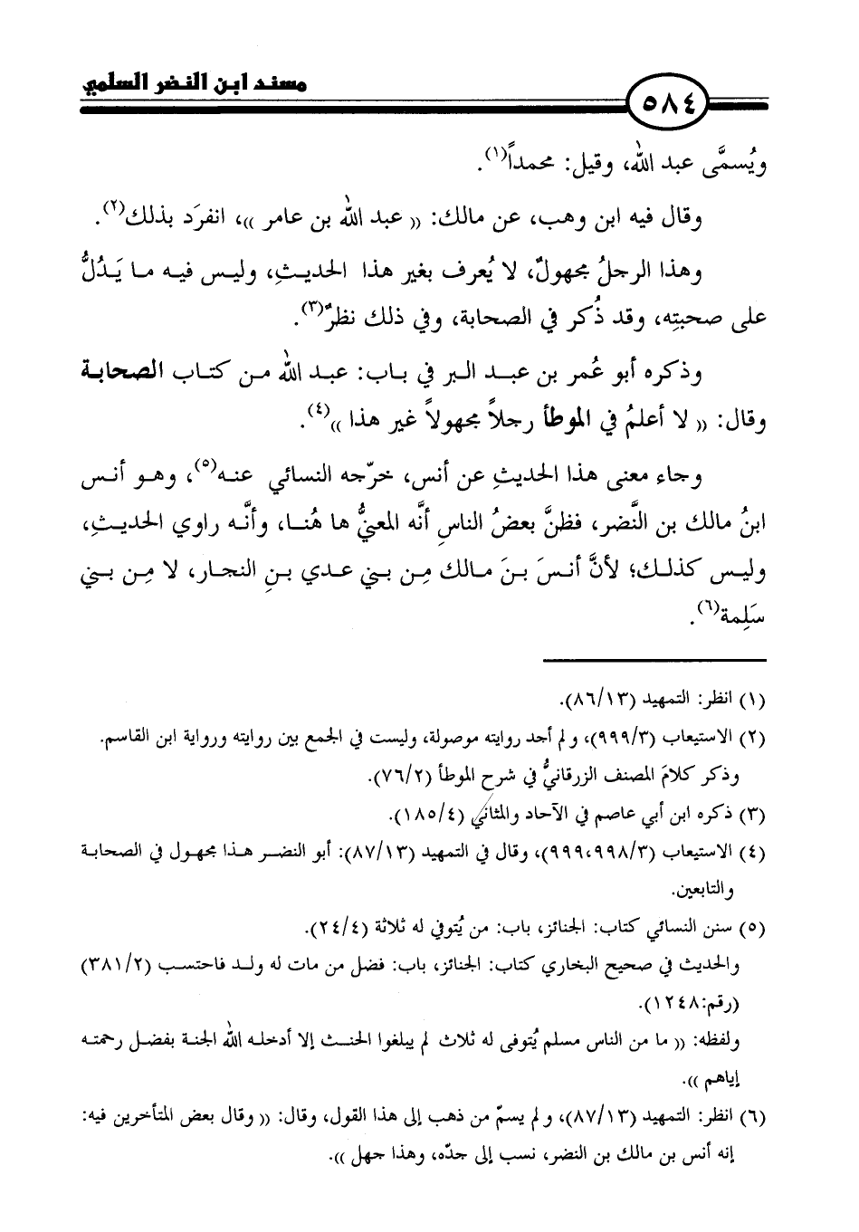 (٤) الاستيعاب (٣/ ٩٩٨, ٩٩٩)، وقال في التمهيد (١٣/ ٨٧): أبو النضر هذا مجهول في الصحابة والتابعين.