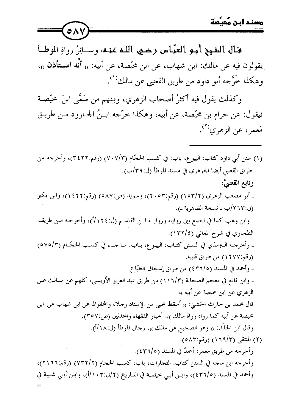 (١) سنن أبي داود كتاب: البيوع، باب: في كسب الحجّام (٣/ ٧٠٧) (رقم: ٣٤٢٢)، وأخرجه عن طريق القعنبي أيضا الجوهري في مسند الموطأ (ل: ٣٩/ ب).