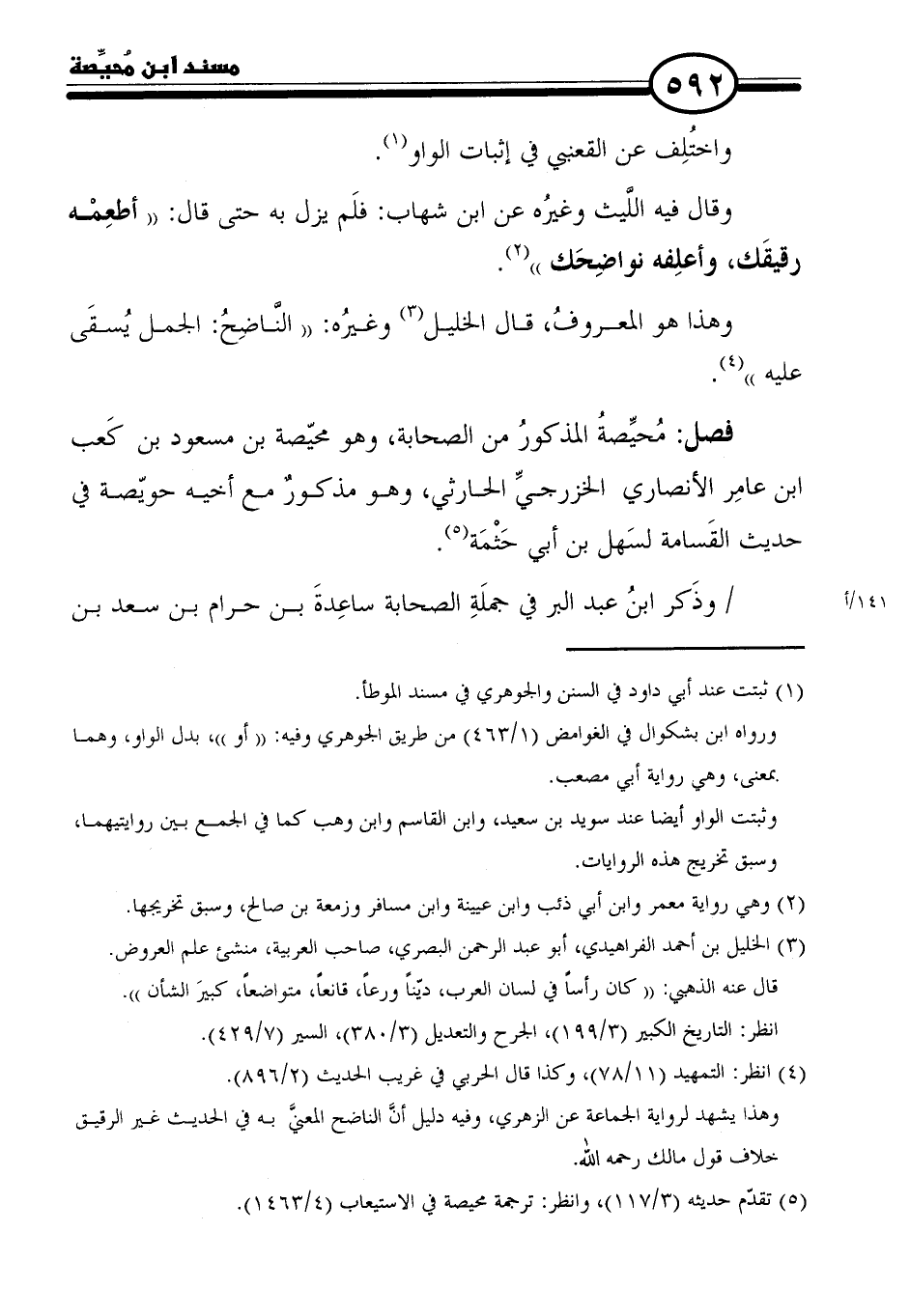 (٥) تقدّم حديثه (٣/ ١١٧)، وانظر: ترجمة محيصة في الاستيعاب (٤/ ١٤٦٣).