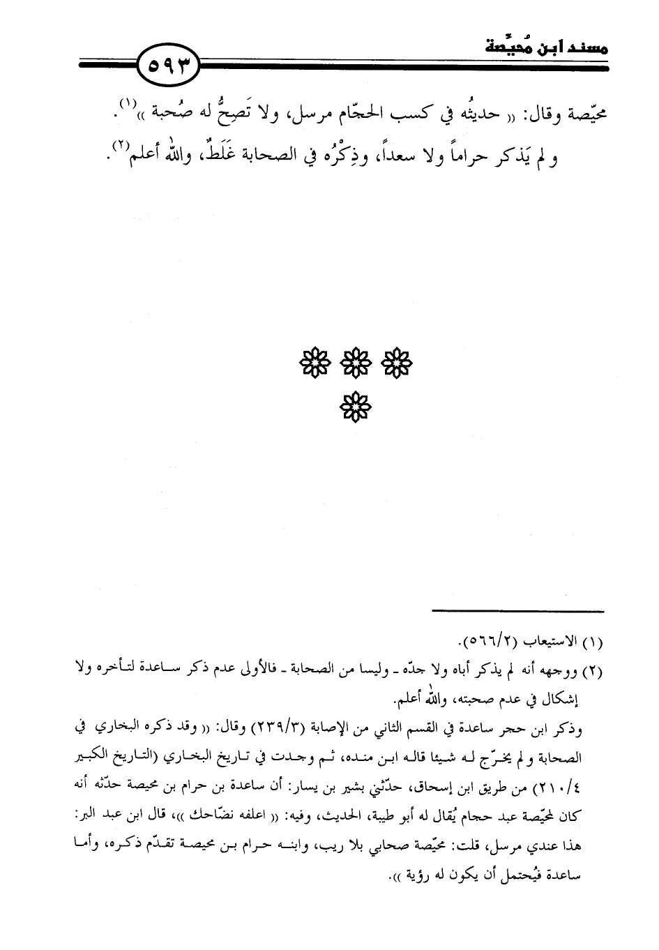 محيّصة وقال: "حديثُه في كسب الحجّام مرسل، ولا تَصِحُّ له صُحبة" (١).