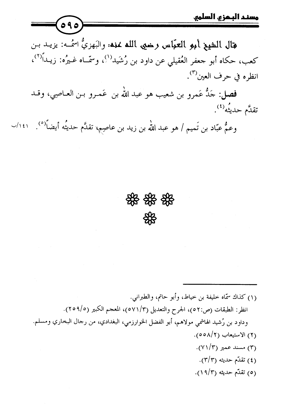 فصل: جَدُّ عَمرو بن شعيب هو عبد الله بن عَمرو بن العاصِي، وقد تقدَّم حديثُه (٤).