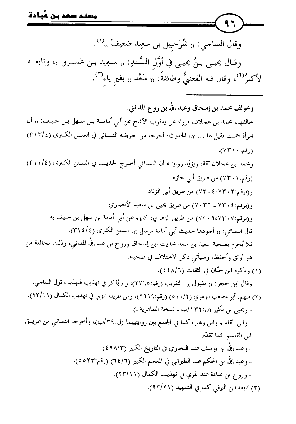 فلا يُجزم بصحبة سعيد بن سعد بحديث ابن إسحاق وروح بن عبد الله المدائني، وذلك لمخالفة من هو أوثق وأحفظ، وسيأتي ذكر الاختلاف فِي صحبته.