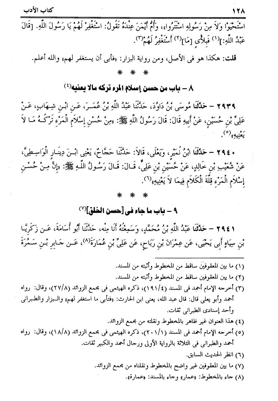 باب من حسن إسلام المرء تركه ما لا يعنيه