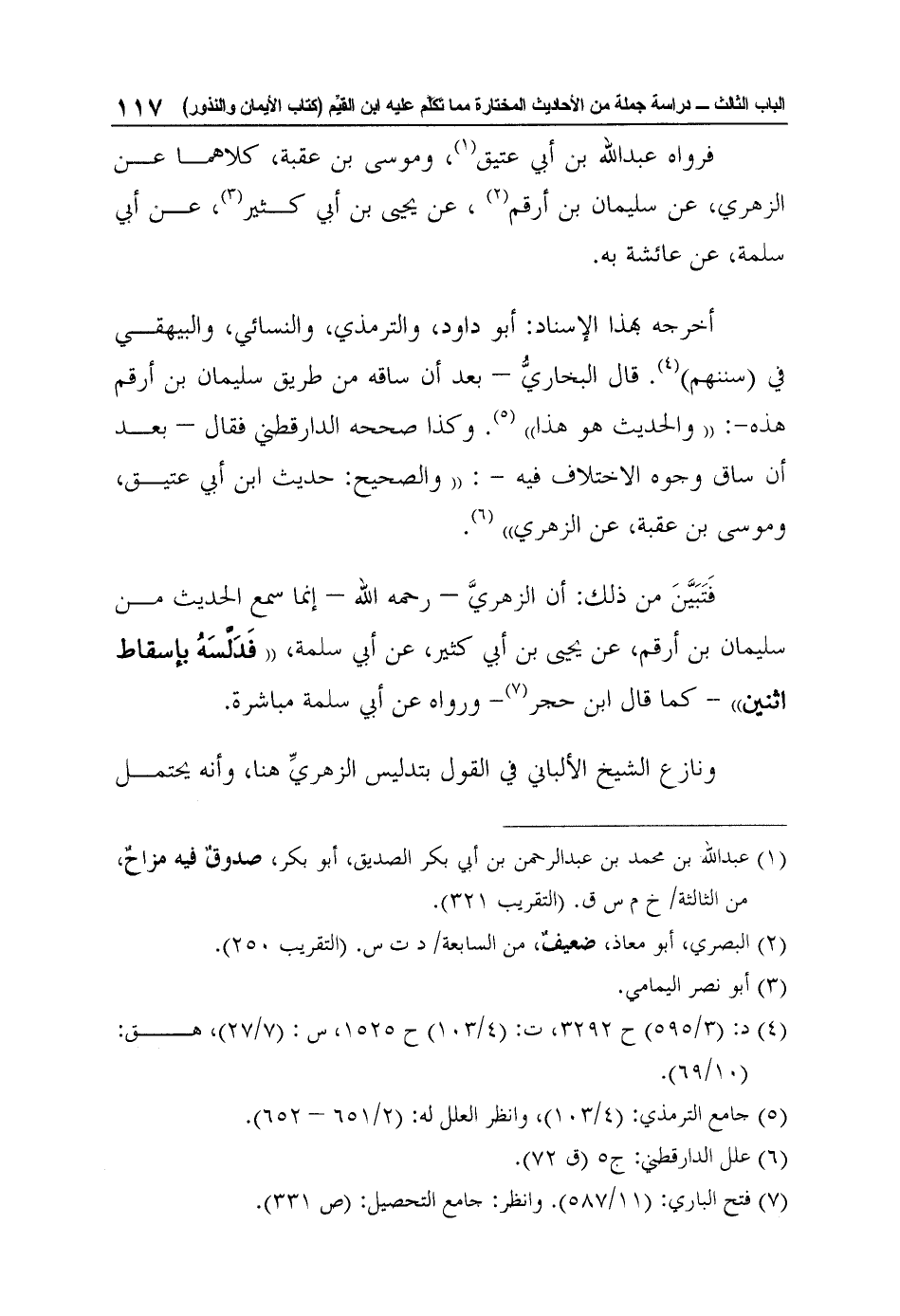 فَتَبَيَّنَ من ذلك: أن الزهريَّ – رحمه الله – إنما سمع الحديث من سليمان بن أرقم، عن يحيى بن أبي كثير، عن أبي سلمة، "فَدَلَّسَهُ بإسقاط اثنين" - كما قال ابن حجر7- ورواه عن أبي سلمة مباشرة.