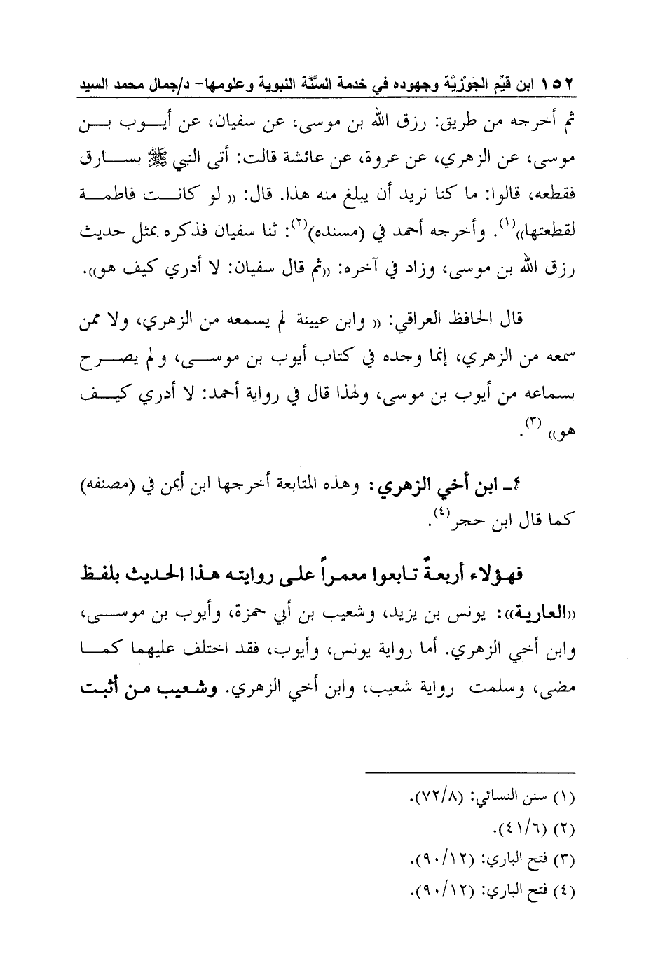 4- ابن أخي الزهري: وهذه المتابعة أخرجها ابن أيمن في (مصنفه) كما قال ابن حجر4.