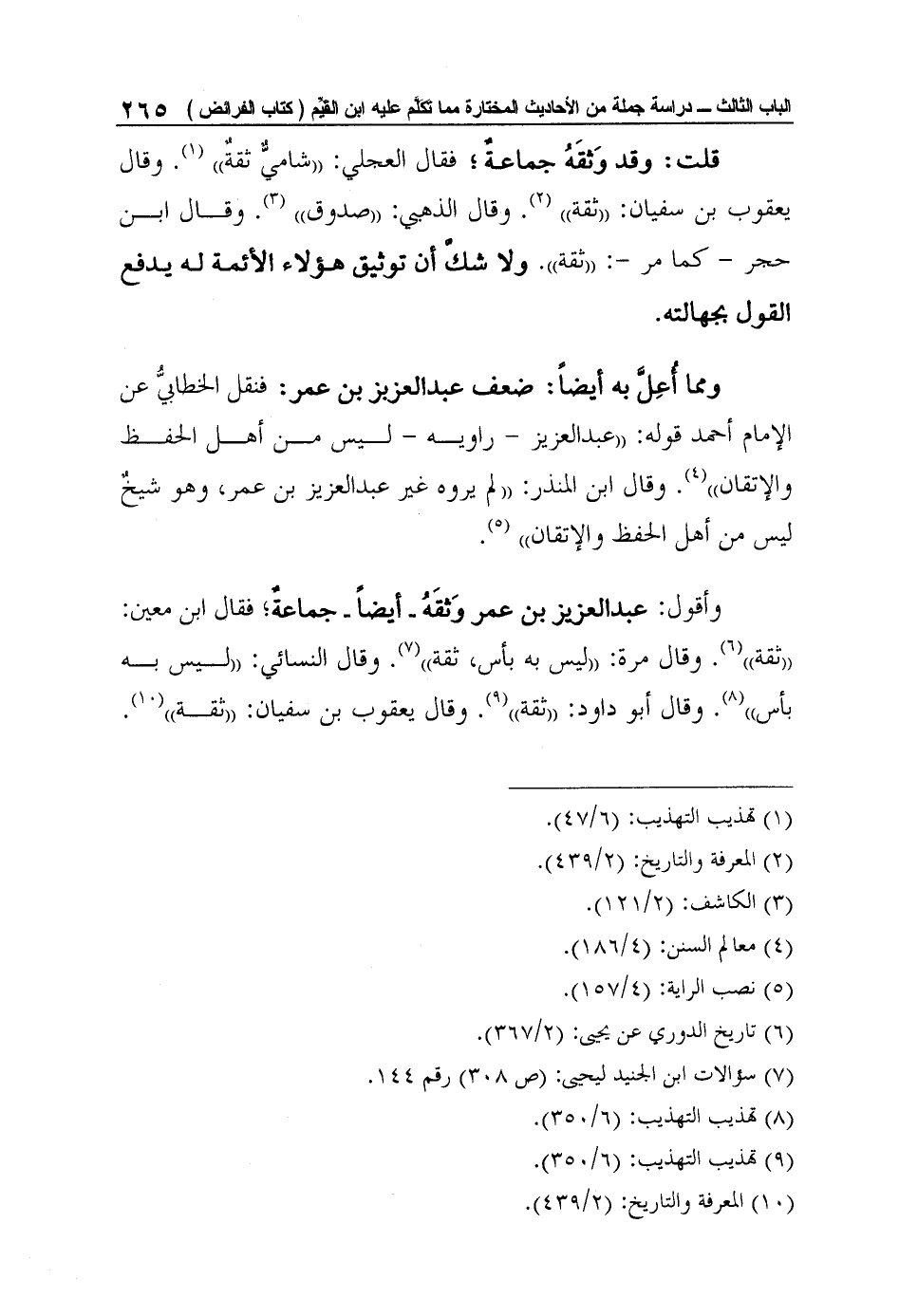 وأقول: عبد العزيز بن عمر وَثقَهُ - أيضاً - جماعةٌ؛ فقال ابن معين: "ثقة"6. وقال مرة: "ليس به بأس، ثقة"7. وقال النسائي: "ليس به بأس"8. وقال أبو داود: "ثقة"9. وقال يعقوب بن سفيان: "ثقة"10.